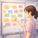 強みは単独で置くより、使う場面と結びつけると価値が上がります。例えば説明が得意なら、初診での同意形成、通院継続の提案、セルフケア指導など、現場で効く場面を添えます。問診が得意なら、情報の取り漏れ防止、鑑別の初期判断、紹介が必要なサインの発見など、成果につながる場面を具体化します。場面が明確になると、職場見学で「その場面が発生する環境か」を確認でき、就職活動とも接続します。キャリアマップは単なる自己分析ではなく、職場選びや学習計画に直結させると運用しやすくなります。