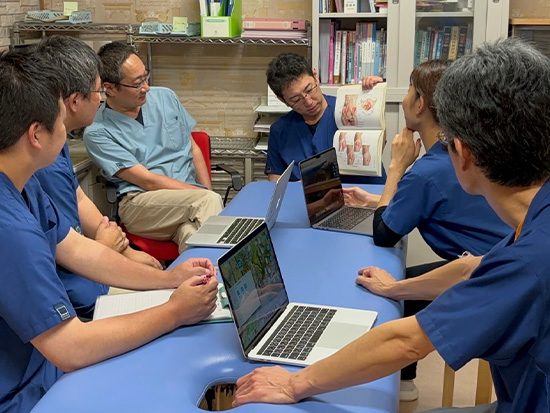 スタッフ間で患者様の状態共有や、施術の引き継ぎを行います。
