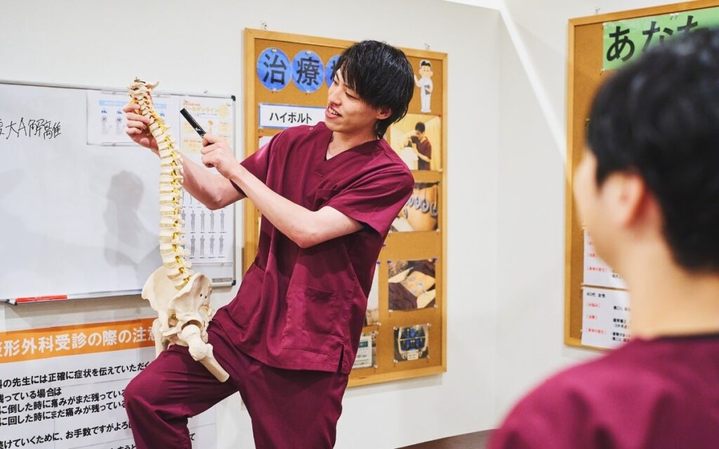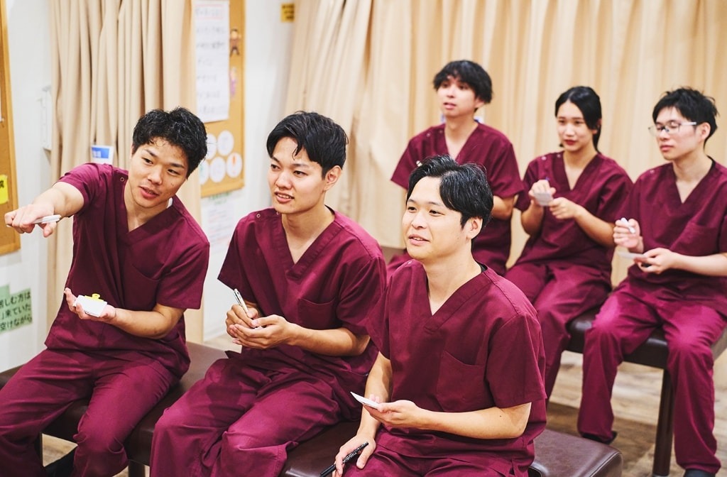 月に2回、営業を完全にクローズして技術研修を行っています。柔道整復師の「外傷知識」や、鍼灸師の「東洋医学」も同時に吸収できるため、圧倒的な知識量の「総合治療家」へと成長できます。