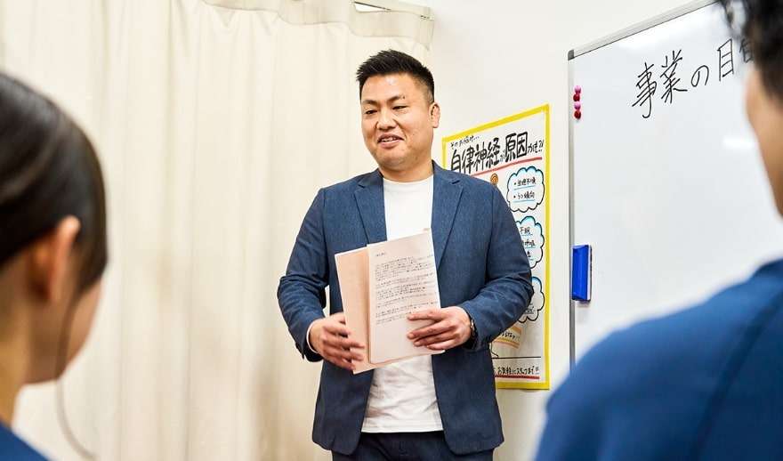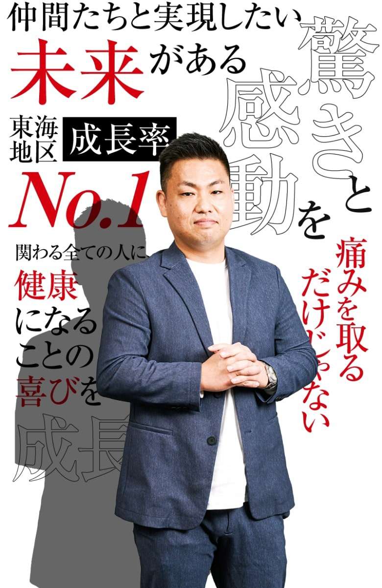 私たちは、痛みを取るだけの対症療法や、「低賃金・少休暇が当たり前」という業界の古い常識を打破します。 目指すのは、患者様自身が健康になれる本質的な価値を提供し、スタッフが広い視野と高い志を持って自己実現できる環境です。 創業8年で18店舗、2030年には50店舗展開を見据える成長スピードの中で、あなたの可能性を解き放ちませんか。
